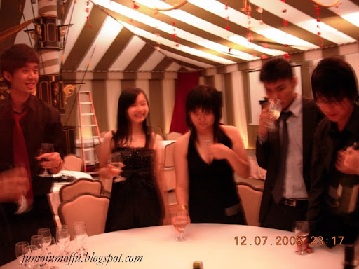 Also, when I was hanging around with ChiWei, one of the guests, a man (fyi), beckoned me. He asked me to sit on this empty seat beside him which belongs to his friend who did not turn up for the night. I rejected and told him that I was one of the committee members for the dinner. 'So you cannot sit?' he asked. (!!!) He stopped persuading me after I told him that I have got a job to do later and went off.